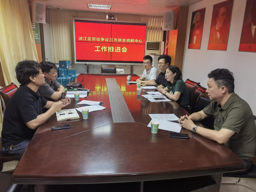 为进一步加强劳动人事争议三方联合调解工作力度,高效处理劳动人事争议,保障劳动关系和谐稳定,6月13日,浈江区人力资源和社会保障局、浈江区总工会、浈江区工商联合会共同召开了浈江区劳动争议三方联合调解中心工作推进会。