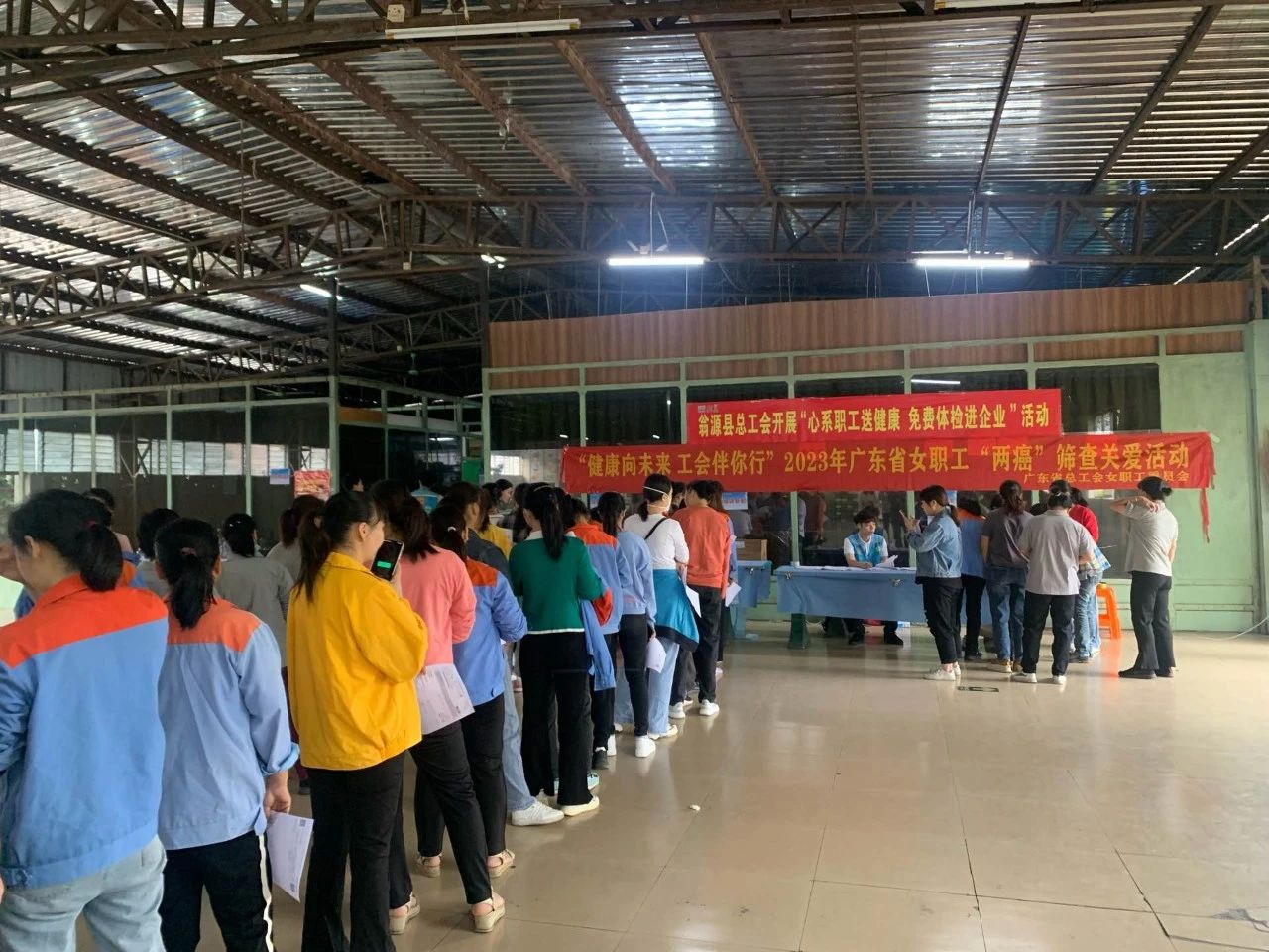 此次活动是由广东省总工会女职工委员会主办,韶关市总工会女职工委员会协办,翁源县总工会女职工委员会承办,是工会扎实推进“我为职工办实事”的暖心工程。活动现场,医务人员详细为女职工开展“两癌”筛查检测,询问她们的身体状况,并向现场参与检查的女职工科普防治“两癌”的专业知识,引导女职工养成良好的健康生活习惯。 关爱女职工身心健康,翁源县总工会一直在行动。近年来,翁源县总工会以服务女职工多样化需求为导向,结合三八妇女节、七夕等时间节点,深入开展普法宣传进企业、法律讲堂下基层、免费体检送职工、婚恋交友建平台等“女职工关爱行动”,切实为女职工办实事做好事解难题,不断提高女职工的幸福感和安全感。