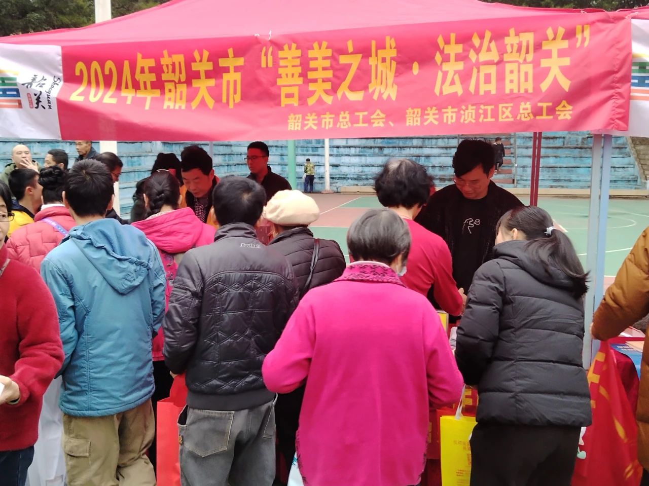 1月3日,由韶关市普法办、市司法局、市法律援助处和浈江区普法办、区司法局、区法律援助处联合主办的韶关市“善美之城·法治韶关”系列活动在浈江区法治文化主题公园(十里亭镇同乐园)举行。韶关市总工会、浈江区总工会在活动现场开展了法律宣传活动。