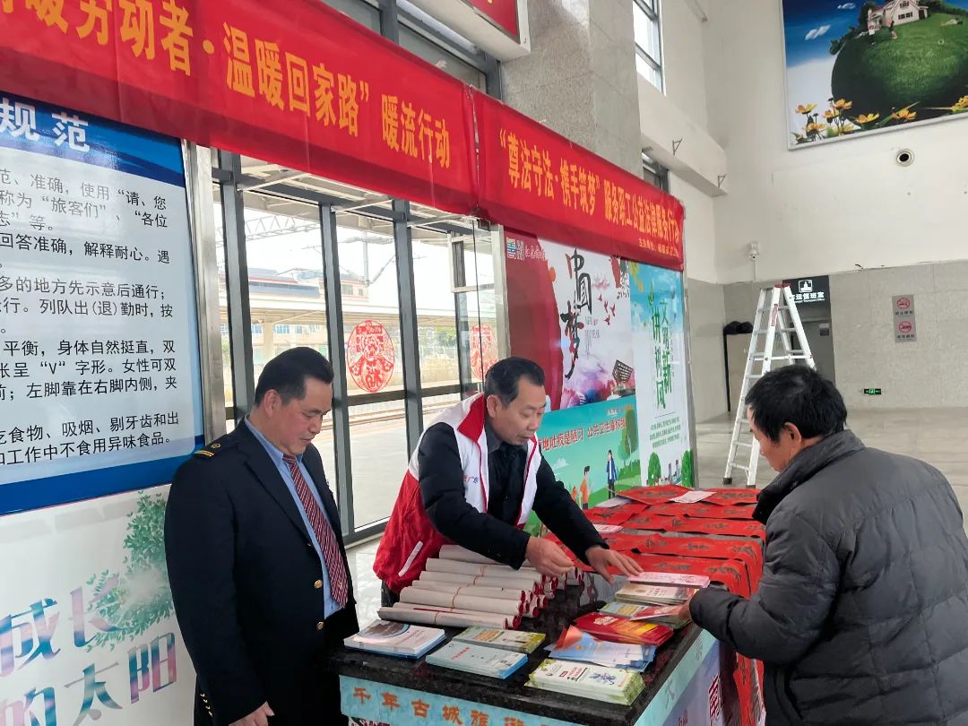 近日,为做好返乡人员的服务工作,南雄市总工会在南雄火车站、汽车站开展2024年“情暖劳动者 温暖回家路”暖流行动,在春节来临之际为异地务工人员送上工会娘家温暖。