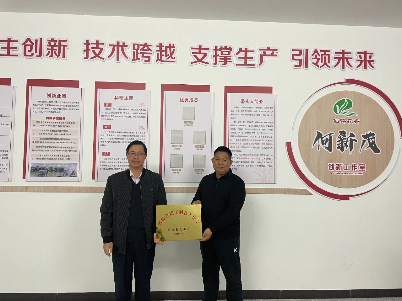 2023年12月28日,“何新茂创新工作室”挂牌仪式在翁源县仙鹤花卉种植基地举行。翁源县人大常委会副主任、县总工会主席陈福环,翁源县总工会常务副主席万晓鸣参加了挂牌仪式。