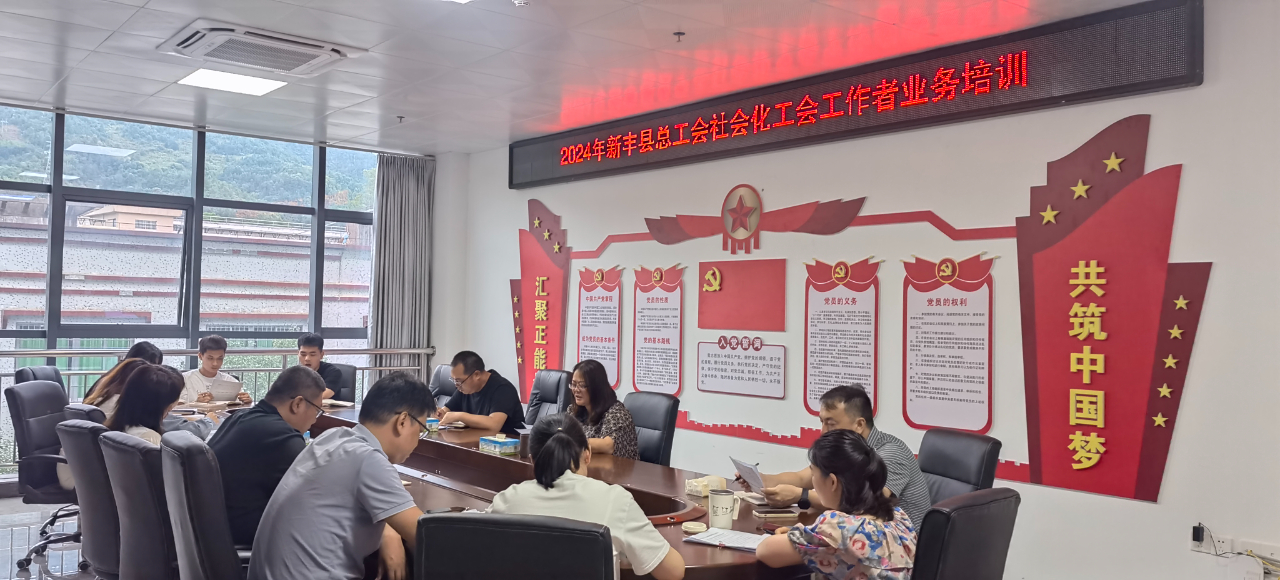 6月18日,新丰县总工会组织社会化工会工作者开展业务培训,提升社会化工会工作者综合素质,引导他们当好组建工会的指导员、职工维权的服务员、政策法规的宣传员、工会经费管理和使用的监督员,更好服务职工群众,促进基层工会工作常态化、长效化、制度化,增强基层工会引领力、组织力、服务力。