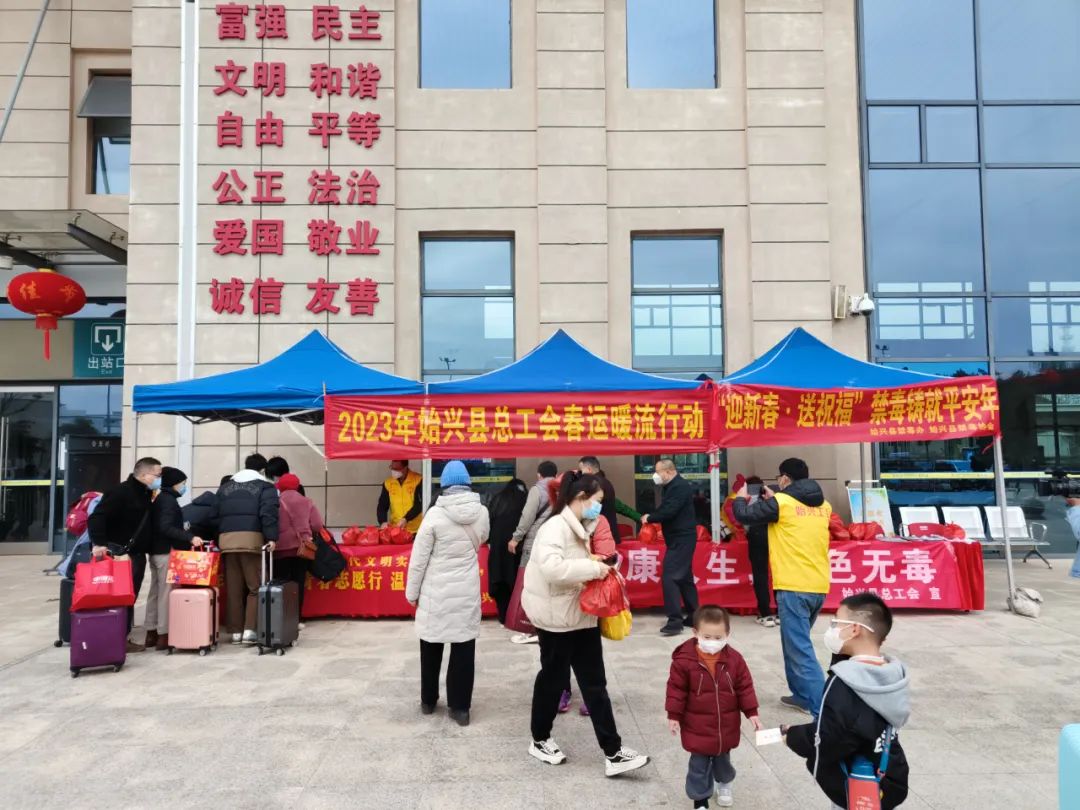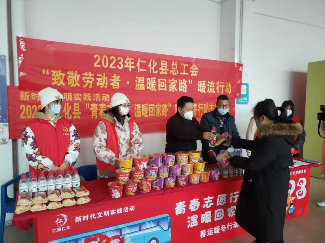 2023年春运开启,仁化县总工会持续开展“暖流行动”,在春节来临之际为异地务工人员送上工会娘家温暖。