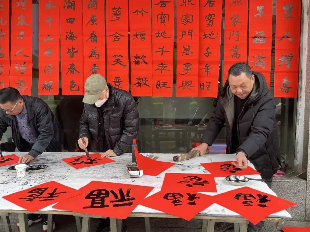 红红火火送春联,新春韵味更浓郁