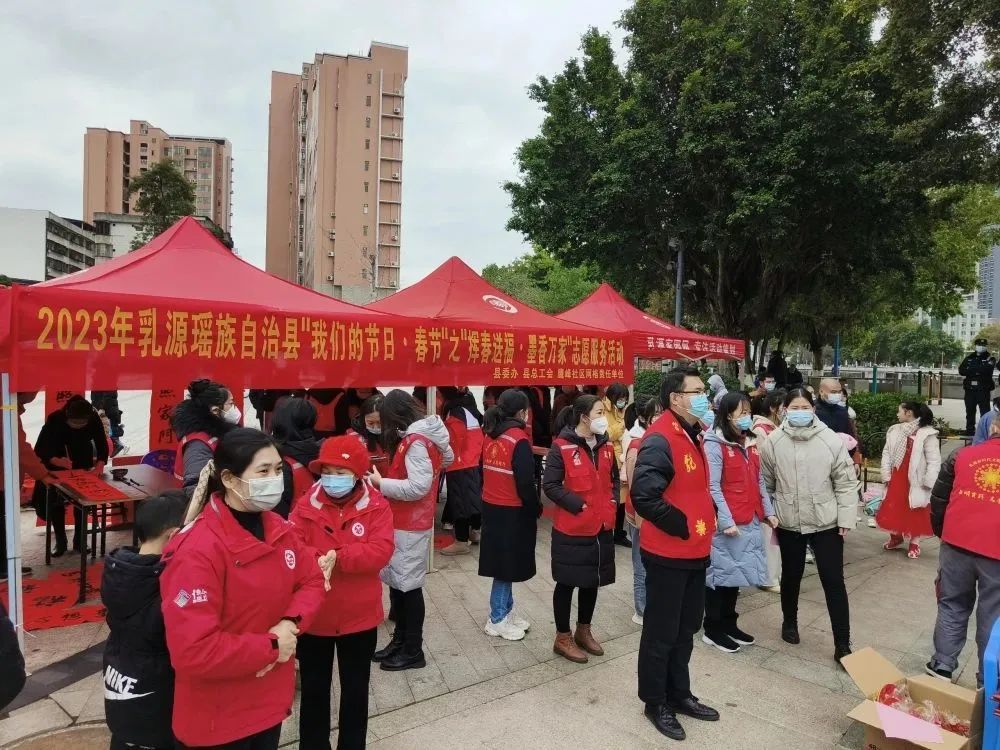 为营造喜庆祥和的新春氛围,弘扬中华民族优秀传统文化,1月16日上午,乳源瑶族自治县委办公室、县总工会联合鹰峰社区网格责任单位,举行2023年乳源瑶族自治县“我们的节日·春节”之“挥春送福·墨香万家”志愿服务活动。