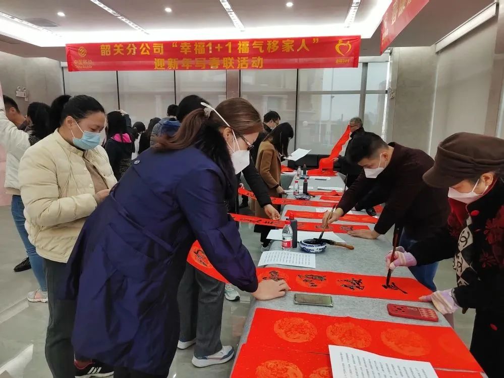 为营造欢乐喜庆、温馨和谐的节日气氛,让广大员工度过一个喜庆、热烈、祥和的春节,韶关移动公司工会组织开展了 “幸福1+1 福气移家人”迎新年写春联活动。