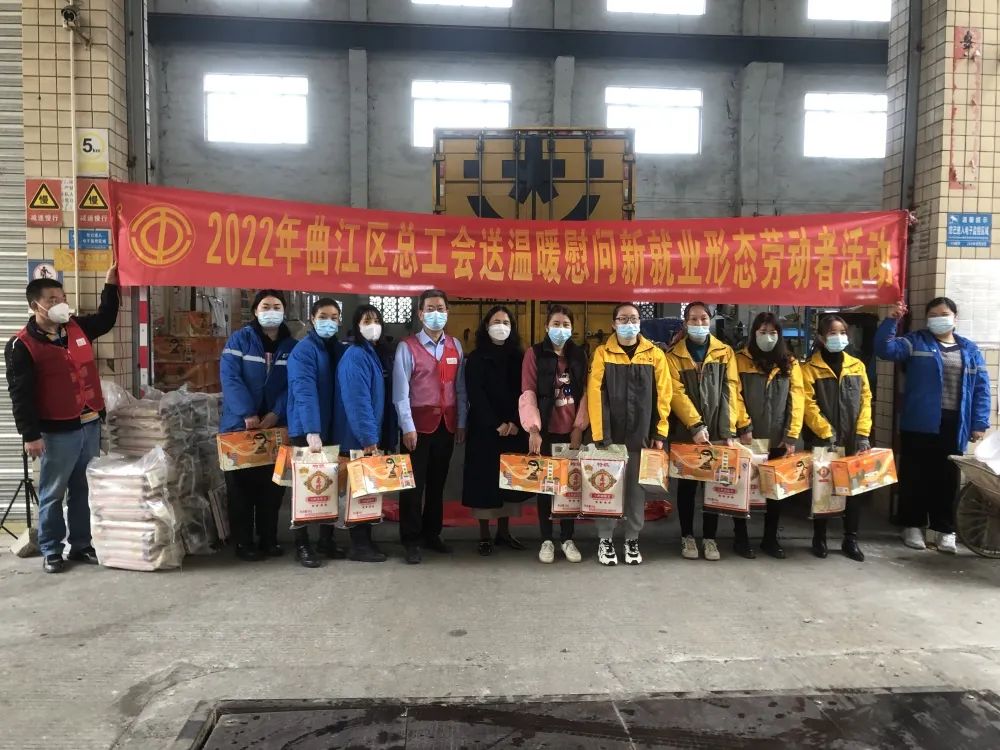 活动期间,曲江区总工会成立慰问组,先后到韵达快递、宇展配送服务公司、顺丰速运、邮政快递、饿了么等新业态企业开展关心关爱新就业形态劳动者慰问活动,送去慰问品和春节的问候,把党委、政府和工会“娘家人”的关心关爱送到他们的身边。