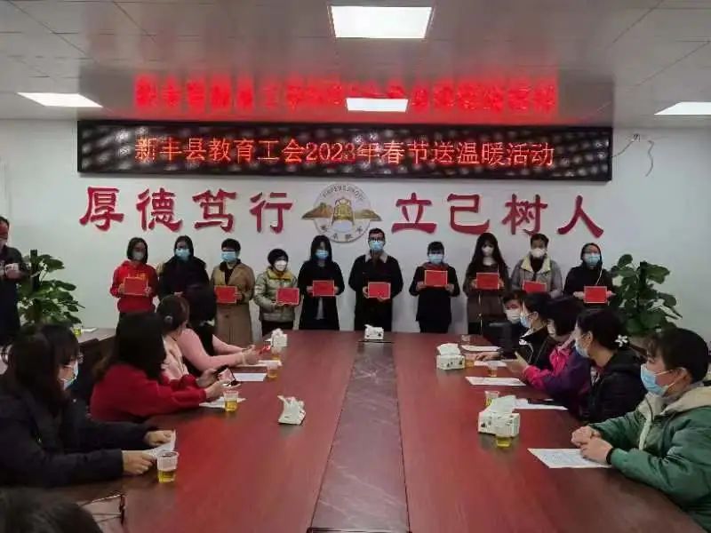 1月12日,新丰县教育工会开展春节送温暖座谈会慰问活动,为60名教育系统困难职工发放慰问金,及时将党委、政府以及工会组织的关爱送到教职工心坎上。