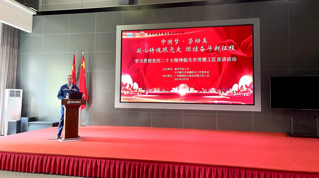 3月9日,市总工会、市直属机关工作委员会在广东中南钢铁股份有限公司联合举办了“中国梦·劳动美——凝心铸魂跟党走 团结奋斗新征程”学习贯彻党的二十大精神韶关市劳模工匠宣讲活动。