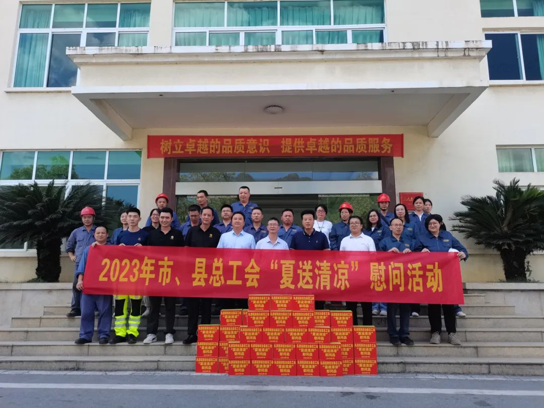 慰问组先后来到乳源电化厂、广东硕成科技股份有限公司,向在高温天气下坚守岗位的一线职工送上清凉解暑饮料,叮嘱大家在工作中强化安全意识,合理安排作息时间,做好防暑降温措施,增强自我保护意识,确保高温期间安全工作。