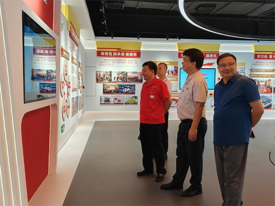 在丹霞冶炼厂智慧展厅,调研组观看了企业群团工作宣传片,听取了企业负责人汇报关于丹霞冶炼厂在思想引领、科技创新、队伍建设、人文关怀等产改重点工作开展的情况。