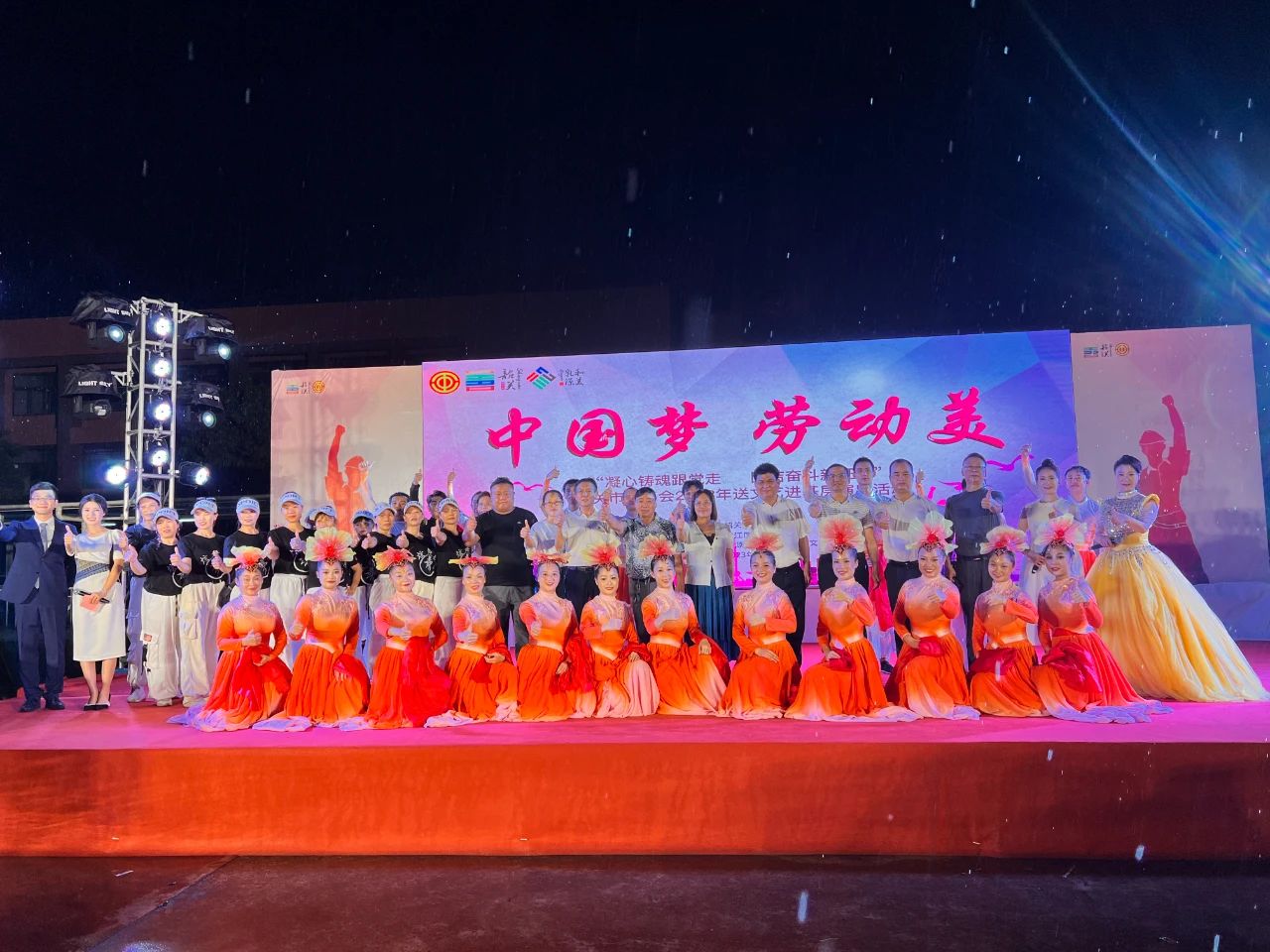 为深入学习贯彻党的二十大精神,不断丰富职工业余文化生活,凝聚职工共识,汇聚职工力量,激发广大职工的主人翁责任感和劳动热情,近日,由韶关市总工会与武江区总工会联合举办的“中国梦·劳动美——凝心铸魂跟党走 团结奋斗新征程”送文艺进基层活动在武江区甘棠工业园的韶关市东盈服装有限公司举行。韶关市总工会副主席肖伟旗,武江区人大常委会副主任、区总工会主席谭木初和东盈服装厂相关负责人等参加活动,辖区内各企业工会职工代表共600余人观看演出。