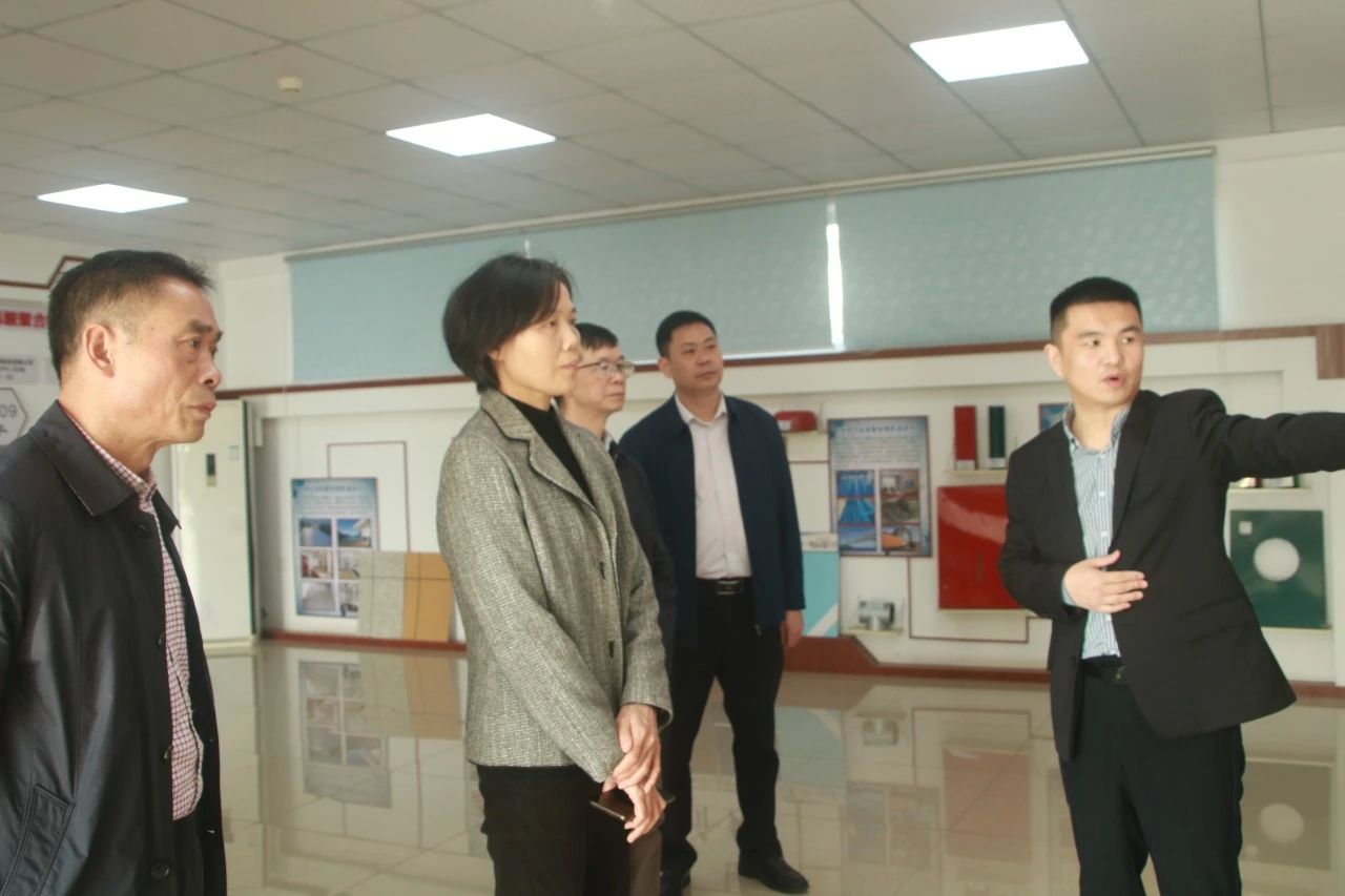 韶关市人大常委会副主任、市总工会主席邓彩虹(中)在衡光公司展厅听取公司负责人介绍公司发展情况。