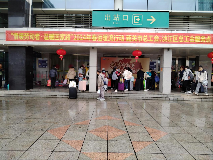 为做好返乡人员服务工作,2月4日至2月9日,韶关市总工会、浈江区总工会在韶关火车东站开展“情暖劳动者·温暖回家路”春运暖流行动,为返乡的异地务工人员发放慰问物资,提供暖心服务。