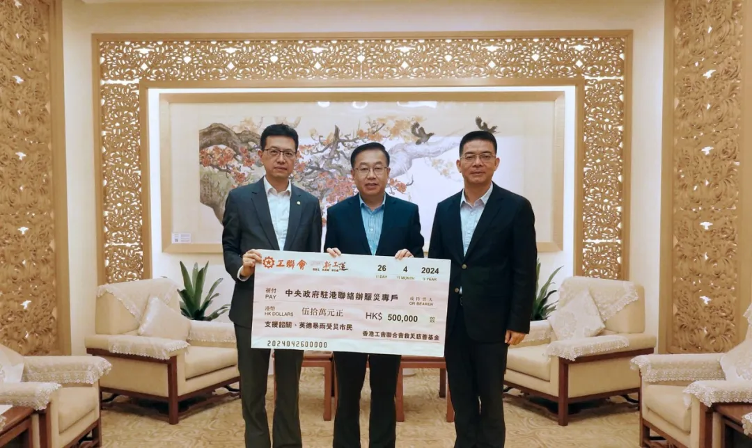 洪水无情,工会有爱。近日,香港工会联合会向韶关市捐赠30万元港币支援我市近期发生的洪涝灾害救灾工作。