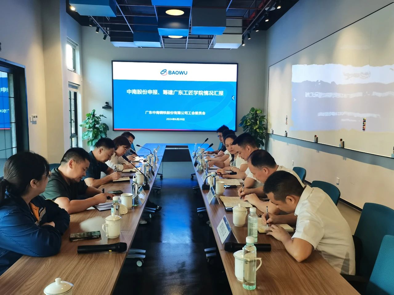 调研组一行来到广东中南钢铁股份有限公司,实地走访查看公司的智慧中心、实训课室、工匠空间、职工(劳模)创新工作室等地,并询问了部分实训工作情况。在工匠空间,中南股份公司向调研组汇报了培育劳模工匠的情况和劳模工匠所取得的成绩,蓝领职工创新工作室培育工匠人才和为企业创新创效,以及在申报工匠学院方面所具备的优势条件等情况。作为联合申报单位的广东松山技术学院,向调研组汇报了学院的基本情况、学院建设发展方面取得的成绩、与中南股份公司联合成功申报广东省第一批产教融合型企业等方面的工作。调研组还听取了“劳模工匠助企行”专项行动工作汇报,并与大国工匠培育对象陈科进行交流,勉励其继续努力,多出成果。