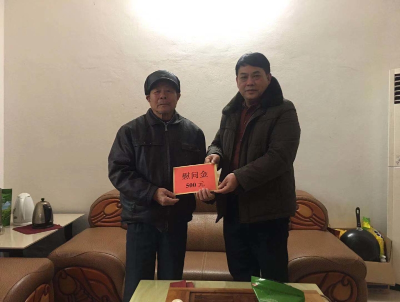 李赞军一行来到黄新金家中,为其送去慰问金并致以新春祝福。离开时还叮嘱黄新金天冷要注意身体,注意防寒保暖。据了解,黄新金今年84岁,是农业生产先进的典型,1983年被评为韶关市先进生产工作者。李赞军说,劳动模范在不同的工作岗位上发挥了先进经验,为社会的发展作出了巨大的贡献。工会要始终把慰问困难劳模作为一项重点工作,把工会的关怀和温暖送到困难劳模家中。