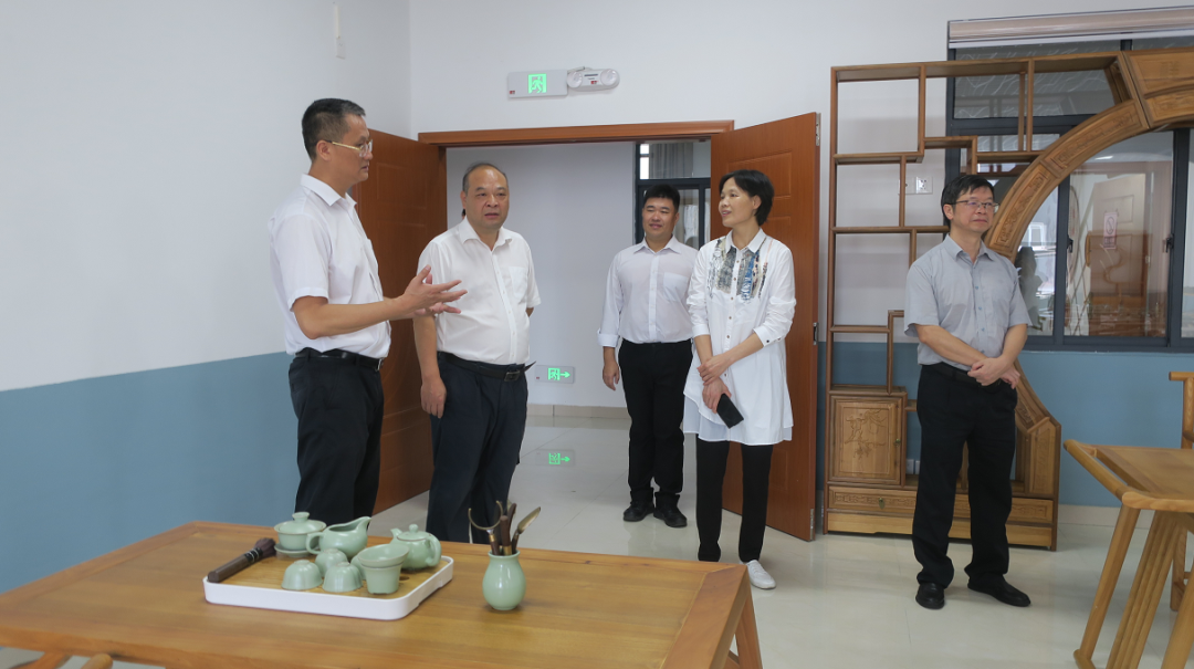 调研组一行实地察看浈江区工人文化宫茶艺室。