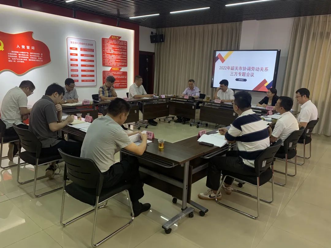 8月10日,2022年韶关市协调劳动关系三方专题会议在市总工会召开。市人力资源和社会保障局、市总工会、市工商联的业务分管领导、部门负责人和相关工作人员参加会议。