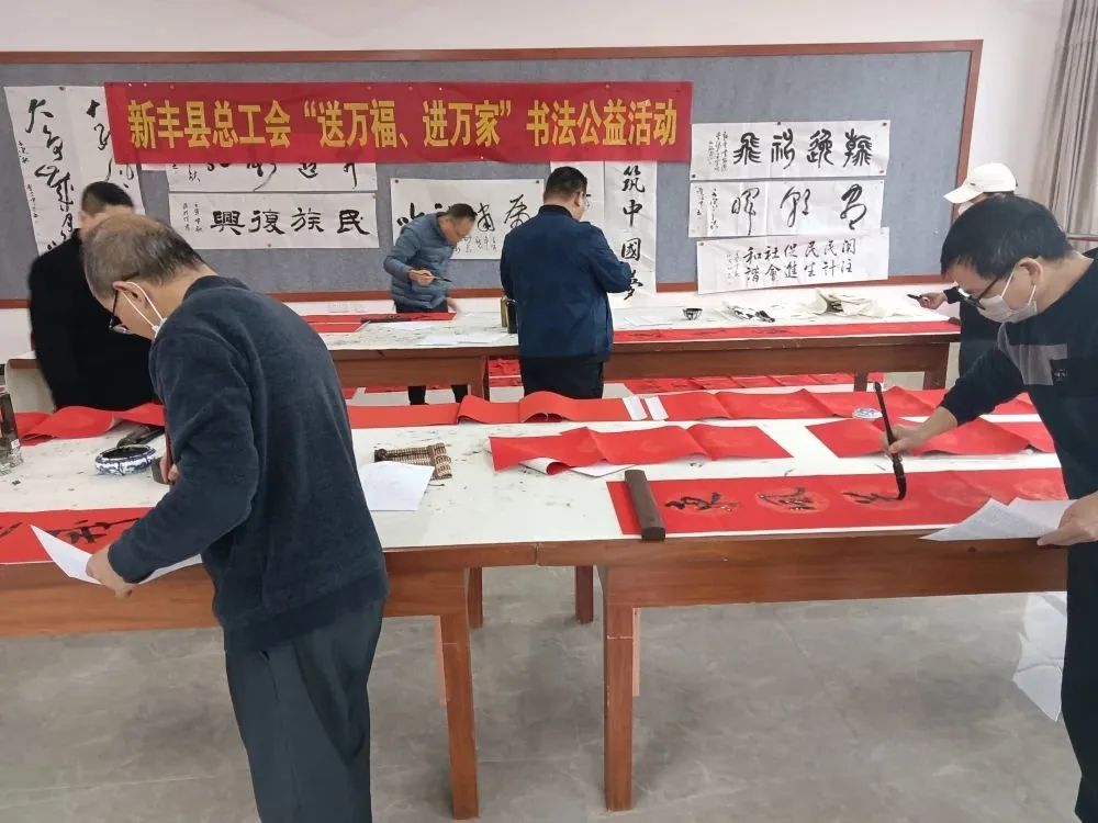 1月16日,新丰县总工会邀请该县书法协会书法家为职工书写春联、送祝福,把党委政府、工会组织的关怀关爱送给职工,丰富职工群众精神文化生活、凝聚职工群众精神力量。