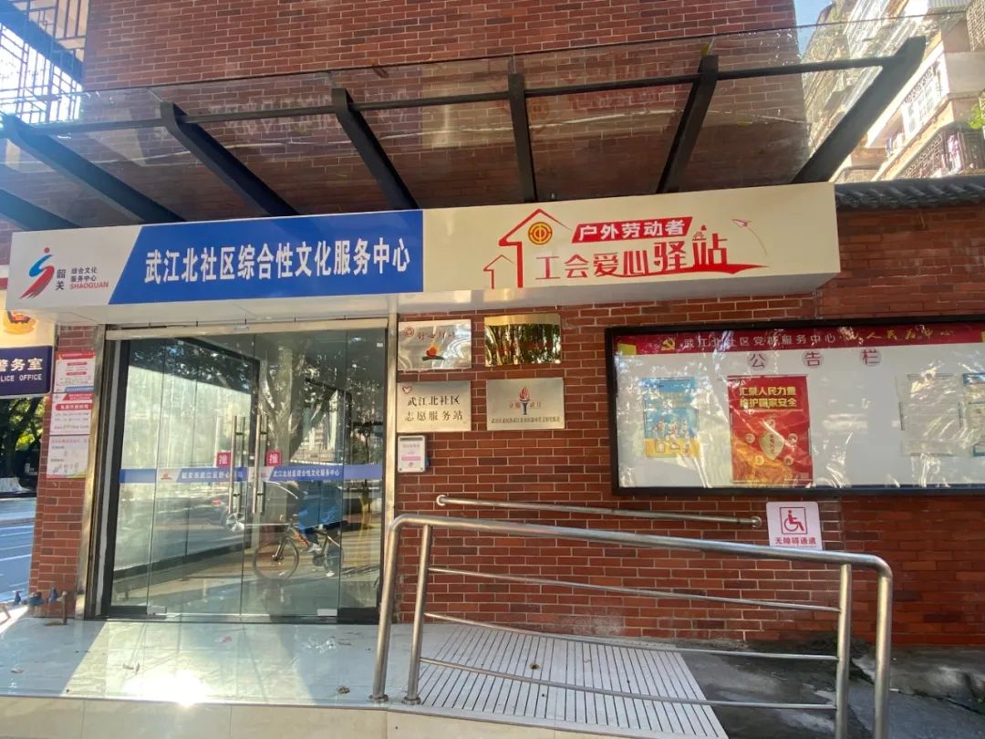 武江北社区居民委员会工会户外劳动者爱心驿站。