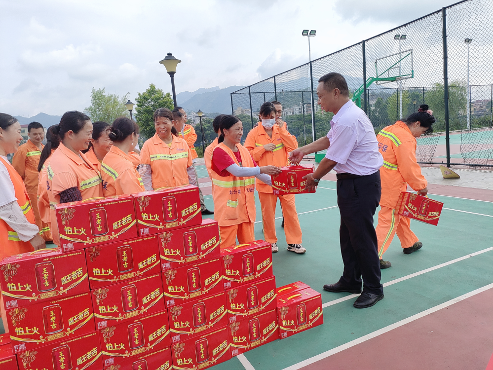慰问组到该县官广工业园区文体广场,与环卫工人亲切交谈并送上了清凉饮料,向他们表达诚挚的敬意,感谢他们一直以来默默坚守岗位,不畏酷暑、不怕劳累。