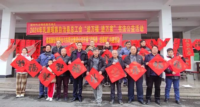 为营造欢乐祥和的节日氛围,同时把党和政府及工会的关怀送到职工群众的心坎上,1月25日上午,乳源瑶族自治县总工会进企业开展“送万福、进万家”书法公益活动,共送出500多副春联。