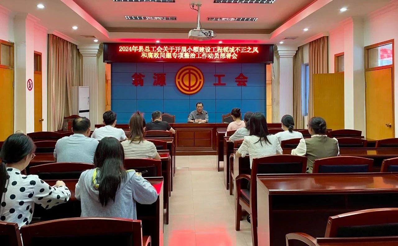 近日,翁源县总工会召开小额建设工程领域不正之风和腐败问题专项整治工作动员部署会议,翁源县总工会常务副主席万晓鸣参加并讲话,全体职工参加会议。