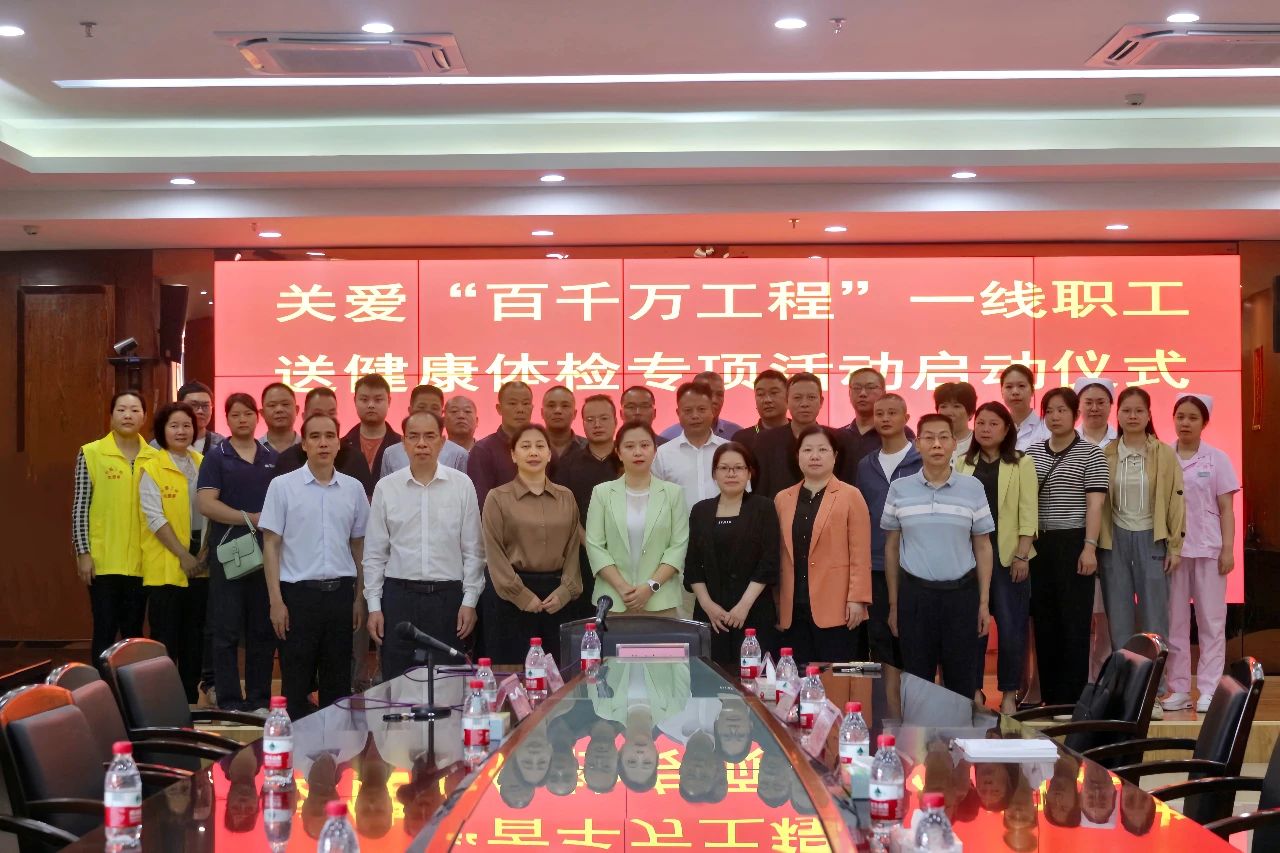 4月24日,乐昌市总工会联合市“百千万工程”指挥办、市卫生健康局、市人民医院共同举办“关爱‘百千万工程’一线职工,送健康体检专项活动”启动仪式,免费为全市60名“百千万工程”一线职工代表进行健康体检。
