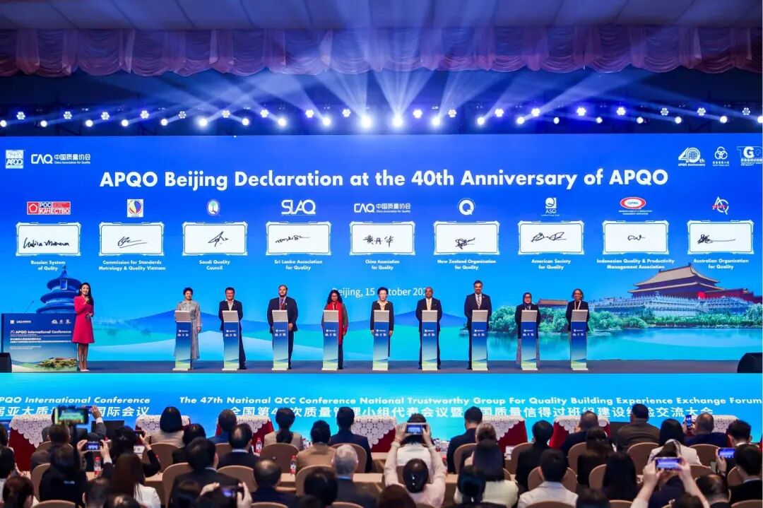 2025年10月15日至16日,在北京国际会议中心,第30届亚太质量组织(APQO)国际会议以 “面向未来的质量发展之路(Quality Path for the Future)” 为主题,吸引了来自中国、新加坡、沙特、澳大利亚、美国等16个国家的质量组织负责人、质量专家学者及企业代表出席。中国质量协会、美国质量学会、新西兰质量组织、斯里兰卡质量学会等现场参会的APQO核心委员会成员,共同签署《亚太质量组织成立四十周年北京宣言》,致力于让质量成为亚太乃至更广区域的“共同语言”,成为连接产业与社会、现在与未来的坚实桥梁。参加全国第四十七次质量管理小组代表会议暨全国质量信得过班组建设经验交流大会的团队,同步见证了这一历史时刻。