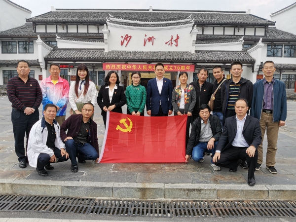 1934年11月上旬,中国工农红军在汝城成功突破第二道封锁线,毛泽东、朱德在这里联名签署发布了《出路在哪里?》的文告,同时涌现出许许多多像“半条被子”这样军爱民、民拥军的感人故事。在沙洲村“半条被子的温暖”陈列馆,讲解员带领大家重温了习近平总书记在纪念红军长征胜利80周年大会上讲述“半条被子”故事的视频讲话。讲解员动情讲述,全体人员仔细聆听、认真观看,一个个动人的军民故事、一件件真实的历史遗物、一张张感人的图片影像,反映了党和人民鱼水情深、血脉相通、生死与共的历史,深深感染着每一个人,为大家上了一堂深刻而生动的党课。在鲜红的党旗下,全体人员高举右手重温入党誓词,庄严的誓词回荡在陈列馆上空。