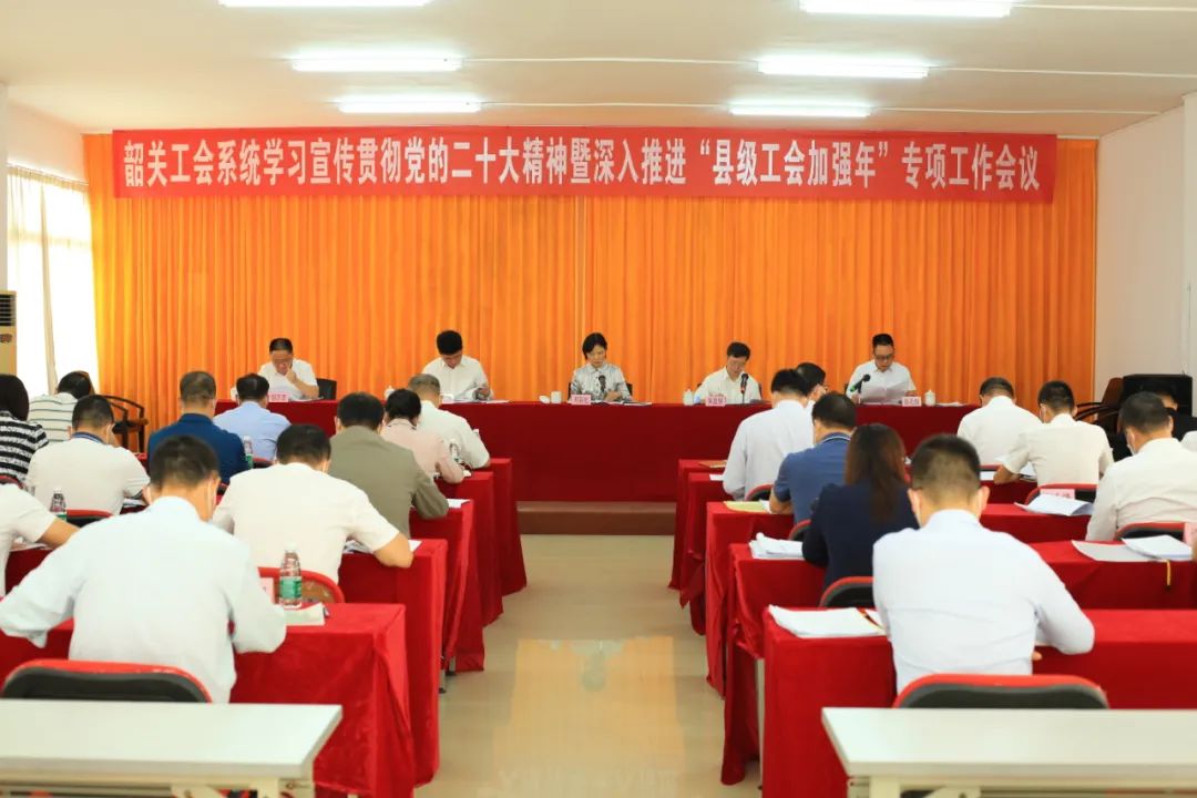 10月28日上午,韶关工会系统学习宣传贯彻党的二十大精神暨深入推进“县级工会加强年”专项工作会议在市总工会五楼会议室召开。市人大常委会副主任、市总工会主席邓彩虹出席会议并讲话。市总工会党组书记、常务副主席吴国强主持会议。
