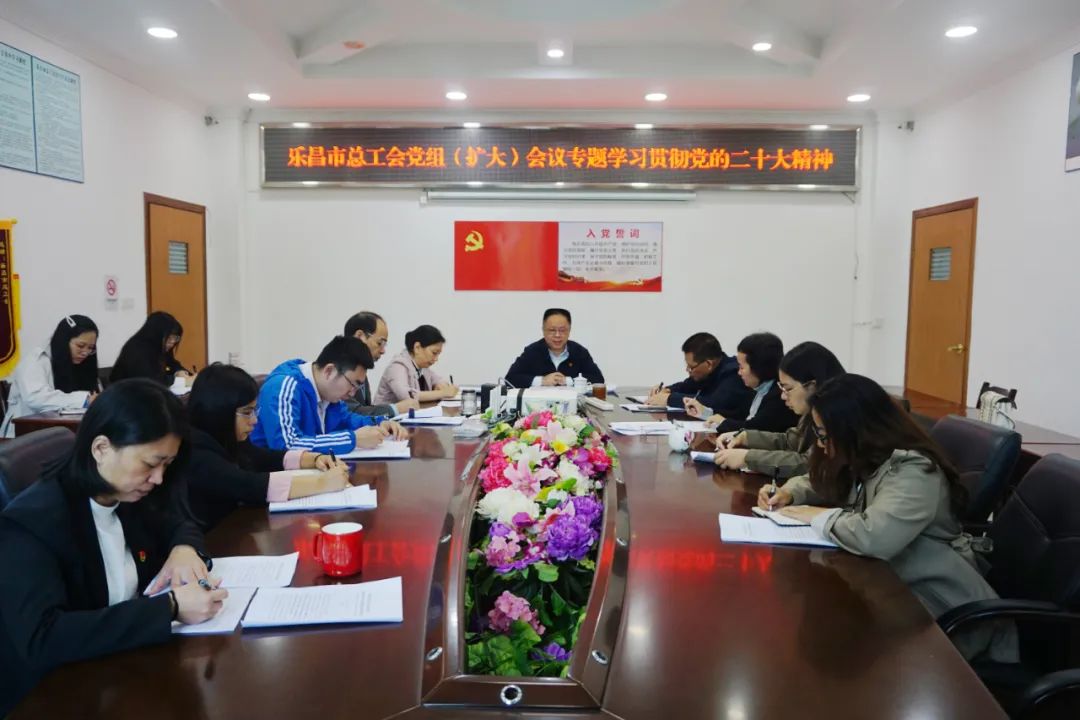 11月8日,乐昌市总工会召开党组(扩大)会议,专题学习宣传贯彻党的二十大精神。乐昌市人大常委会副主任、总工会主席邹志忠主持会议,乐昌市总工会全体班子成员和部室负责人参加会议,并畅谈学习体会。