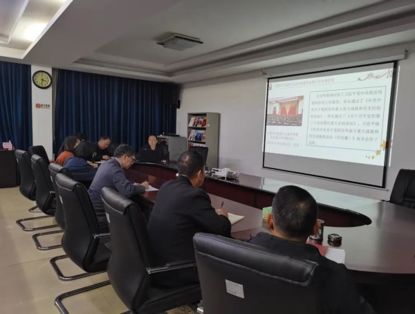 11月19日,市总工会学习贯彻党的十九届六中全会精神。韶关市总工会全体干部职工参加会议。