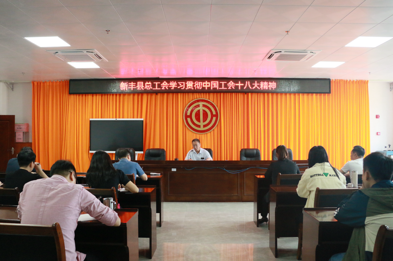 11月7日,新丰县总工会召开会议,传达学习贯彻中国工会十八大会议精神。会议由新丰县人大常委会副主任,县总工会党组书记、主席陈小同主持。